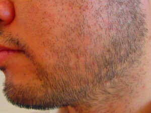 ほほひげは範囲が広い方が多い傾向いあり、ひげが伸びているまたは剃って青ひげになっている場合でもお顔の印象を大きく変える部位の一つです。